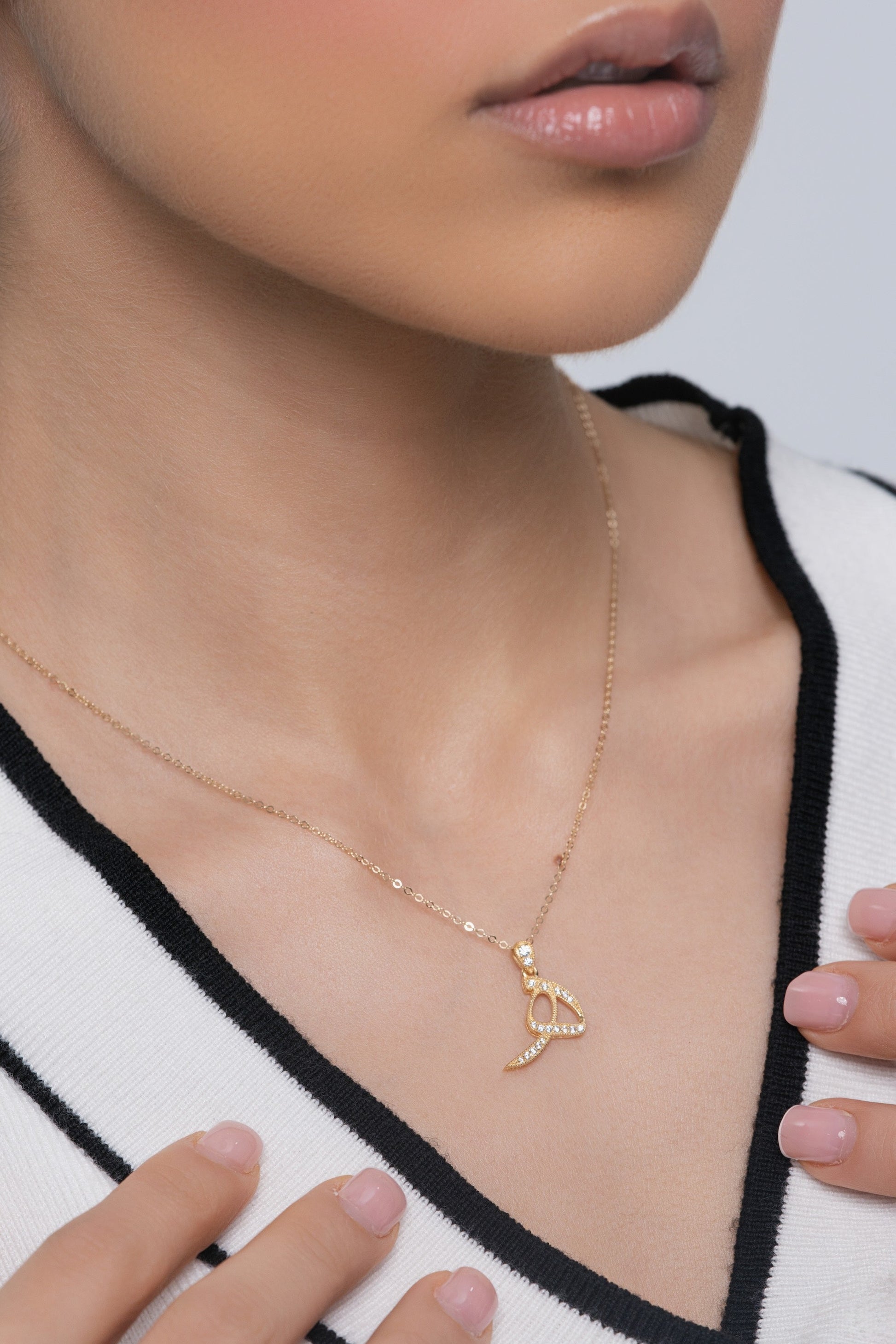 Personalized Arabic Initial Necklace in 18k Gold with Zircon